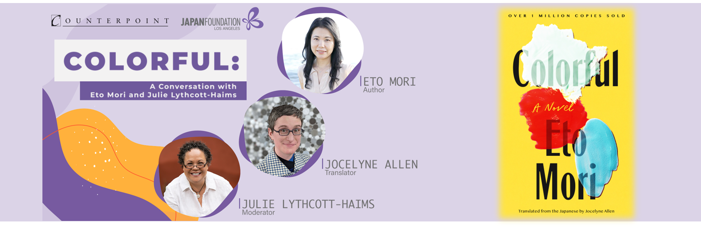 In collaboration with Counterpoint Press, The Japan Foundation, Los Angeles invites you to listen to internationally-acclaimed author Eto Mori discussing her bestselling book, Colorful, which is now available in English! Joined by New York Times bestselling author Julie Lythcott-Haims, the authors discuss not just their crafts and writing practices, but also the tragedy of depression and suicide amongst youths.